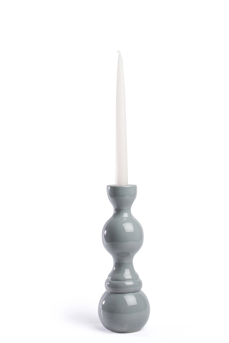 Aukšta pilka keramikinė žvakidė